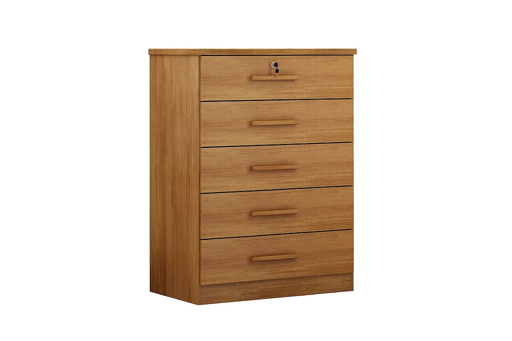Descubra a elegância e funcionalidade da nossa cômoda com 5 gavetas, uma com chave para segurança extra. Perfeito para organizar seu espaço com estilo!