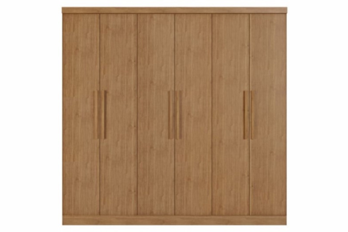 Transforme seu espaço com este elegante guarda-roupa 100% MDF, que combina puxadores amadeirados e 08 gavetas com corrediças telescópicas para máxima funcionalidade. Com compartimentos internos "Ele e Ela" e cabideiros e calceiros em alumínio, é a solução perfeita para uma organização sofisticada.