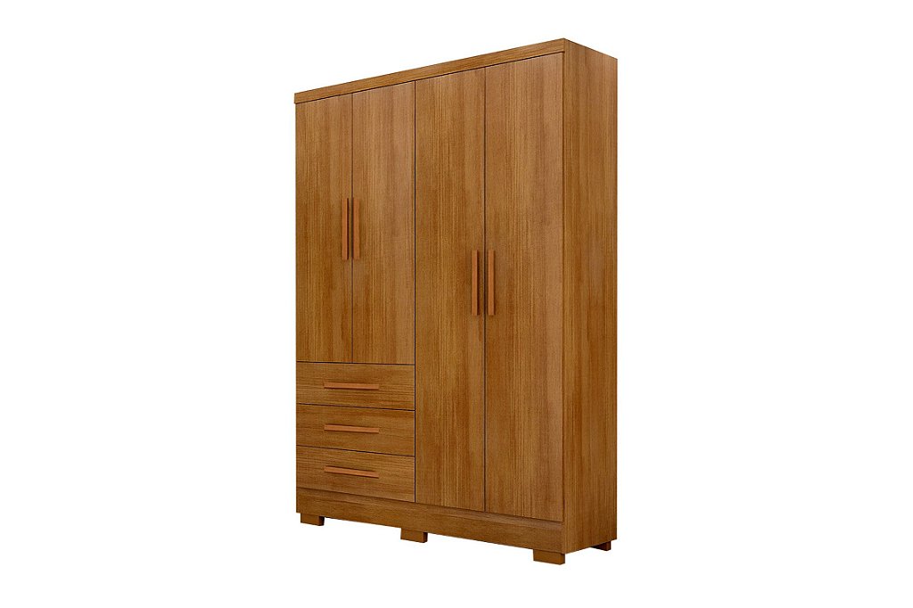 O Guarda Roupa. Vai proporcionar um ambiente aconchegante mantendo um visual sofisticado e funcional. Composto por peças de extrema qualidade e com excelente espaço interno bem distribuídos, oferecendo máxima organização de forma prática. Fabricado em 100% MDP, 4 portas de bater. Possui 3 gavetas com corrediças telescópicas, cabideiros em alumínio. Amplo espaço interno. Aproveite!