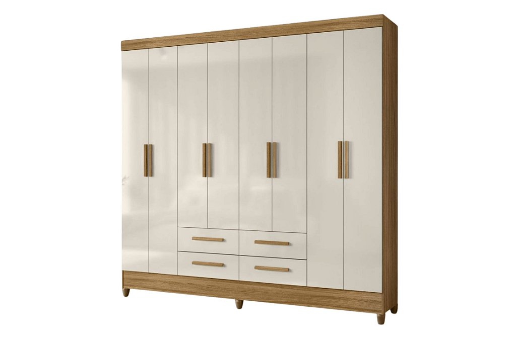 Transforme seu quarto em um espaço organizado e elegante com o nosso incrível guarda-roupa. Com 08 portas de giro e 04 gavetas externas com corrediças metálicas, este guarda-roupa é perfeito para armazenar todas as suas roupas e acessórios. Além disso, os puxadores na cor bronze adicionam um toque de sofisticação ao móvel.