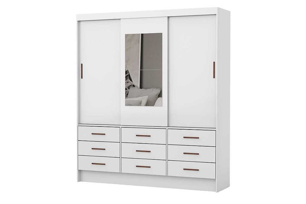 Com 03 portas de correr que facilitam o acesso e otimizam o espaço do ambiente, o guarda-roupa é ideal para quem busca praticidade e organização. Com 09 gavetas, você terá espaço de sobra para guardar suas roupas e acessórios de forma organizada e prática.