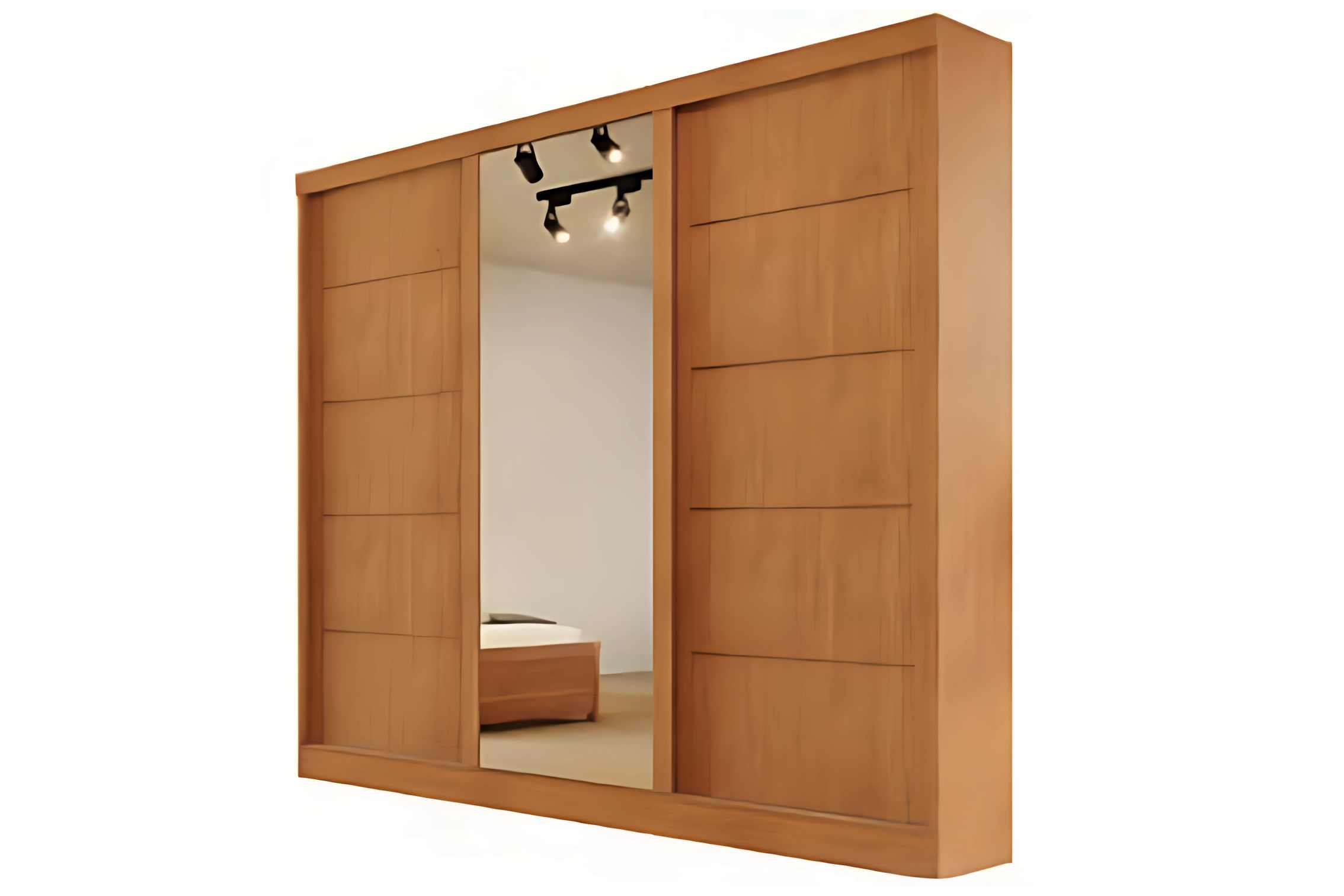 Guarda-roupa com estrutura 100% MDF, que une resistência e acabamento de alta qualidade. Possui 3 portas de correr, sendo a central com espelho e película de segurança, além de 4 gavetas com corrediças telescópicas para maior praticidade. Os puxadores em MDF e o cabideiro em alumínio com pintura UV completam o design funcional e elegante.