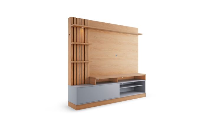 Com detalhes ripados, iluminados por luz de led em seu painel, o Home Theater Maceió é um móvel com o design versátil que combina tanto com ambientes modernos e minimalistas, quanto os clássicos. Possui quatro nichos internos com espaços para acomodar aparelhos eletrônicos e objetos decorativos. Além disso, possui uma porta basculante com o sistema de pistão a gás que garante suavidade em sua abertura. Disponível em duas cores, é um móvel ideal para quem deseja ter um verdadeiro cinema em casa, pois seu painel suporta TV’s de até 65 polegadas.