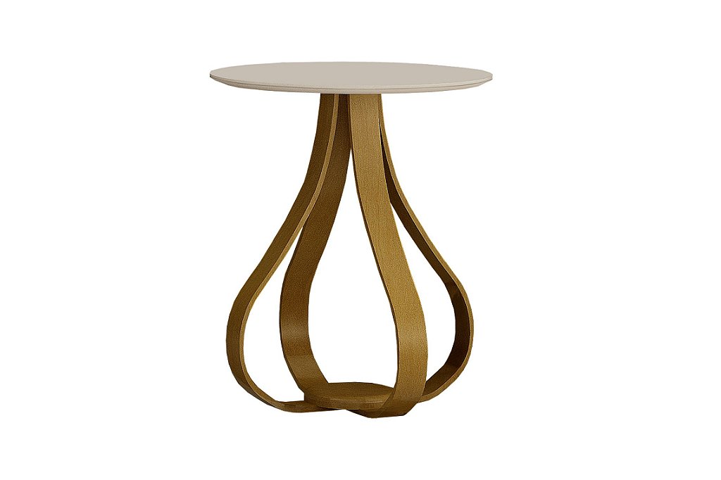 Mesa de canto Cebola em MDF 15 mm, com acabamento laqueado, vidro pintado de 3 mm e pés laminados, unindo sofisticação e durabilidade para transformar seu ambiente!