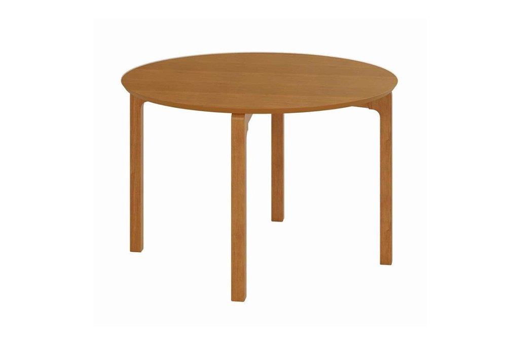 Mesa circular com estrutura em madeira maciça, que garante resistência e durabilidade.
