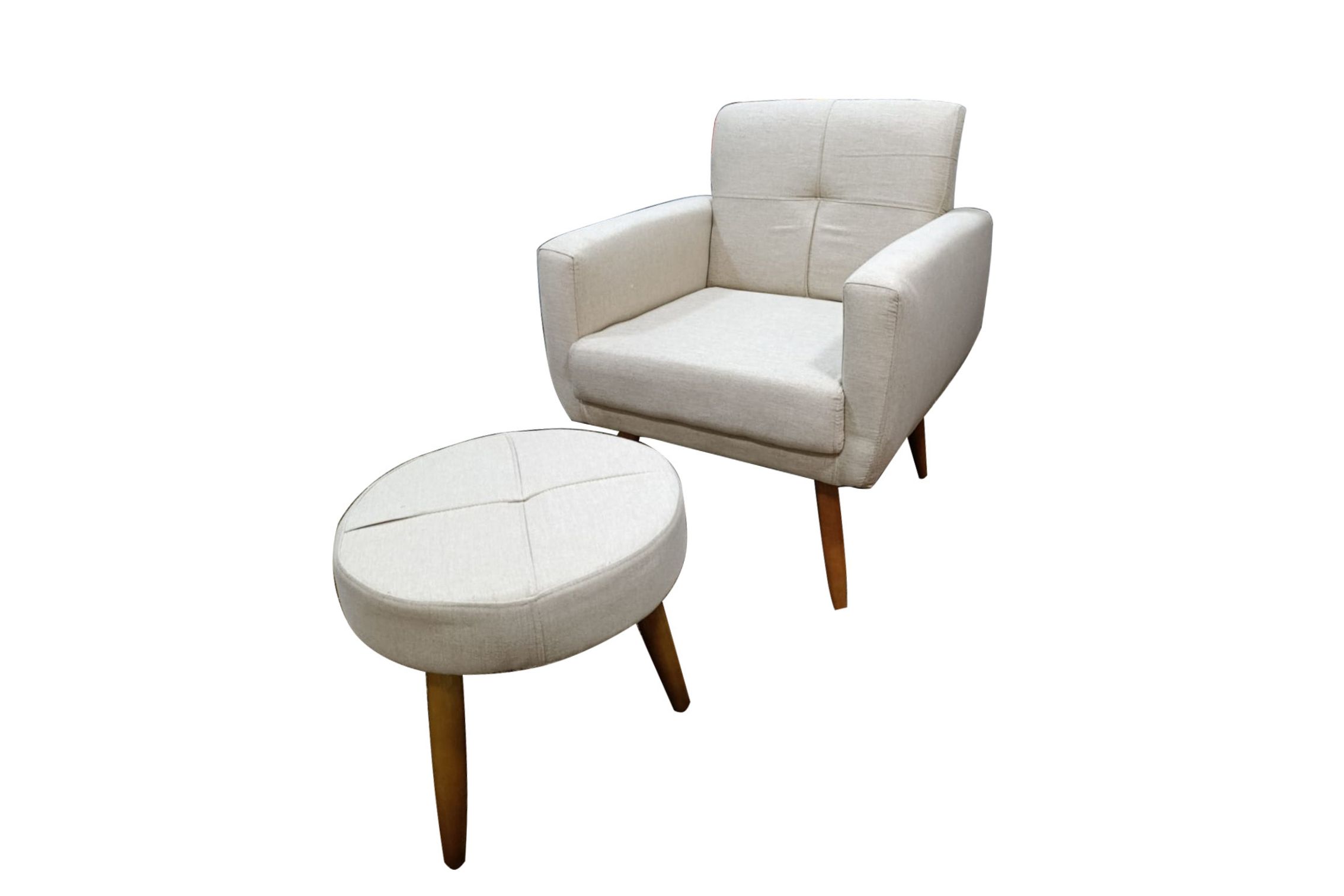 Uma poltrona aconchegante, com assento e braços em espuma D23 que garantem firmeza e conforto no dia a dia. O encosto em espuma D20 oferece maciez na medida certa para relaxar. Acompanha puff em espuma D20, ideal para esticar as pernas e completar a experiência de conforto.