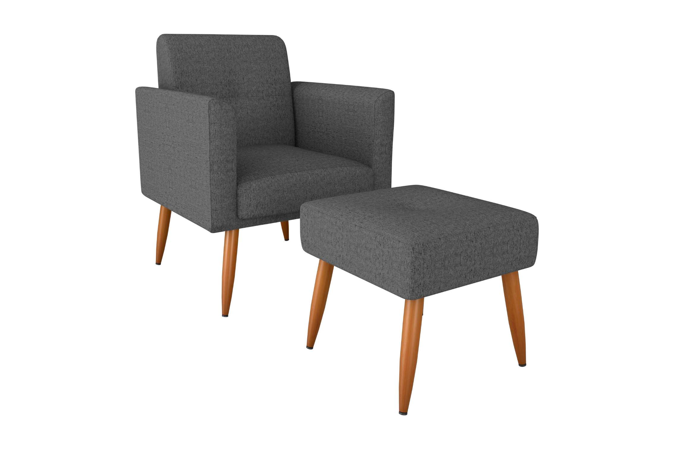 Essa poltrona com puff entrega conforto e firmeza graças ao assento em espuma D20, braços em espuma D23 e estrutura resistente em madeira de eucalipto. A percinta elástica reforça o apoio para uso diário sem perder a maciez. O puff em espuma D20 completa o conjunto, oferecendo um relaxamento ainda mais completo.