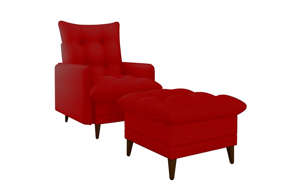 Conforto garantido com a poltrona reclinável com puff, ideal para momentos de descanso. Possui espuma D23, encosto e assento com fibra siliconada e flocos de espuma que se moldam ao corpo. Estrutura resistente em madeira de eucalipto de reflorestamento.