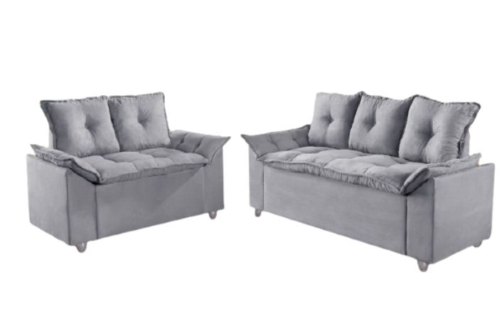O Conjunto Sofá Pampulha com 2 e 3 Lugares Almofadas Soltas tem estrutura em madeira de eucalipto em nova técnica de travamentos, evitando rompimentos nos encaixes de braços. Assento com espuma 26 e cinta elástica de alta resistência e tecido Suede.