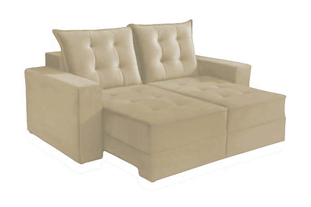 O sofá tem os seus assentos acolchoado com percinta elástica e espuma D28. Acompanha módulo bi partido. Seu encosto possuindo 4 níveis de estágios, seus encostos são reclináveis. Suas almofadas do encosto são removíveis, podendo retira-las da base, sendo 100% fibra siliconada. Seus braços são acolchoados com espuma D28, medem 25cm de largura cada um. Tecido com um toque macio e gostoso, o tecido utilizado é o veludo.