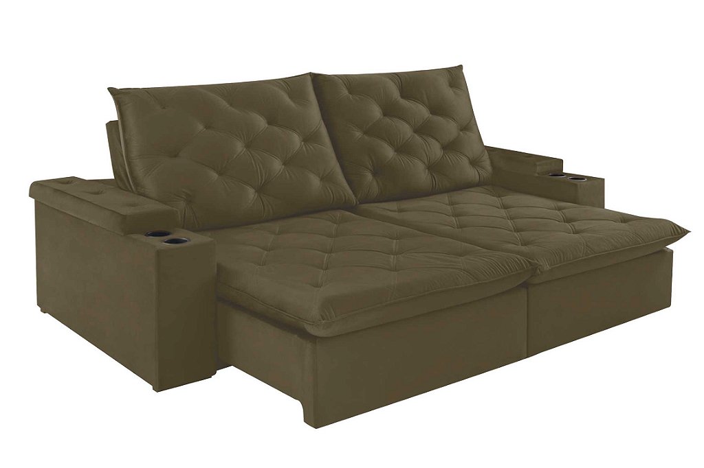 O sofá retrátil com porta-copos embutido no braço é a união perfeita entre conforto e funcionalidade. Com espuma D28, molas espirais e percintas elásticas, garante resistência e maciez incomparáveis. Sua estrutura em madeira de eucalipto traz durabilidade, e o encosto reclinável em 5 posições se adapta ao seu momento de descanso. Ideal para quem valoriza praticidade sem abrir mão do estilo.